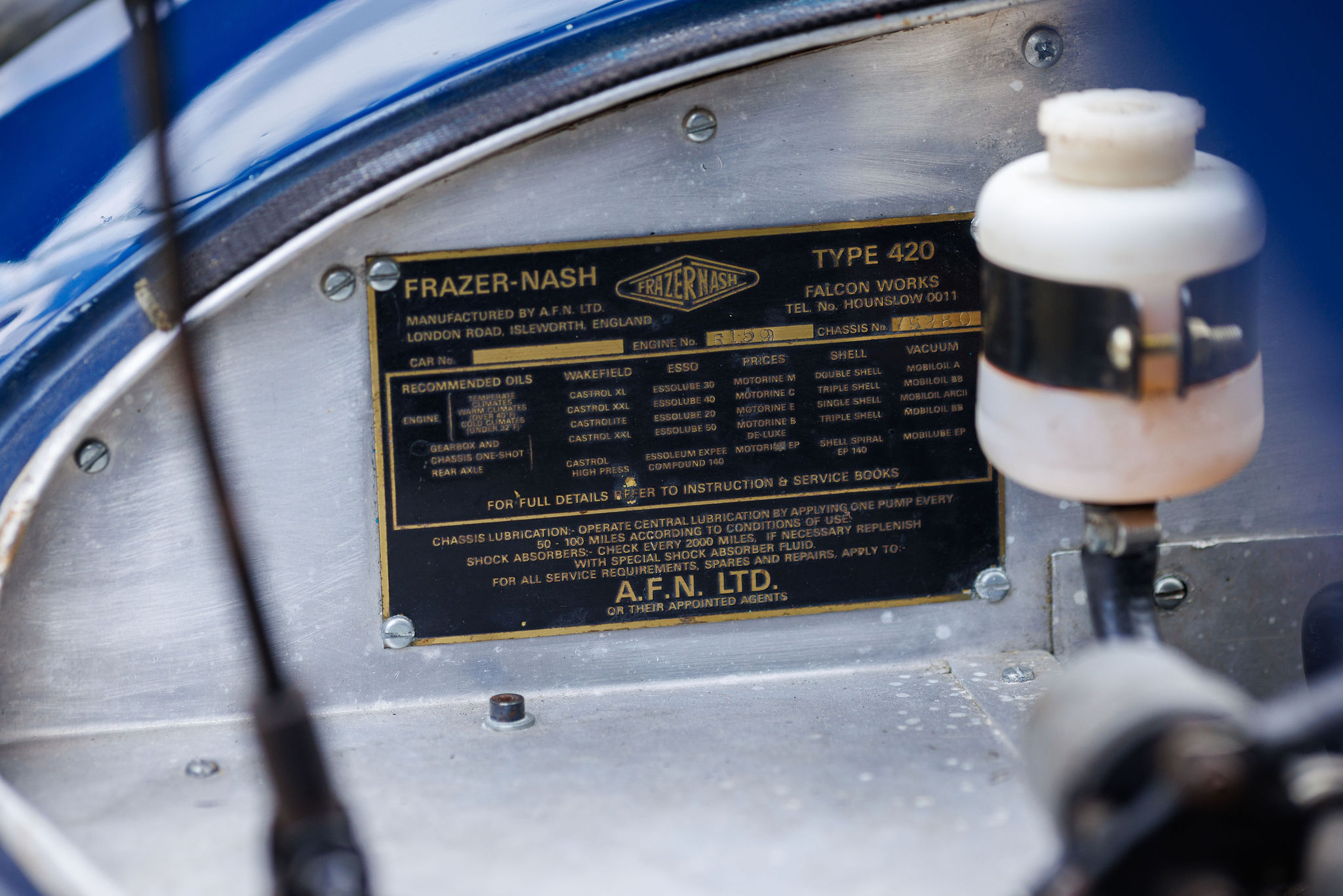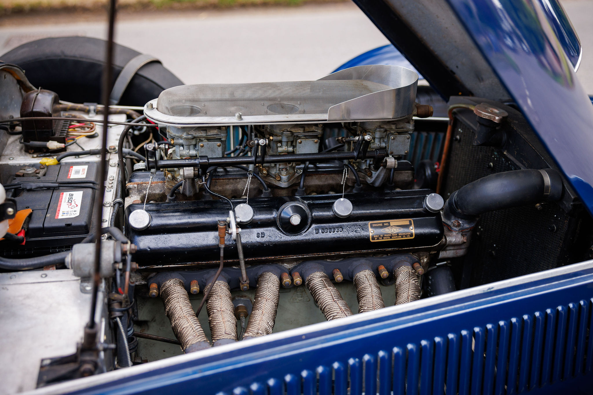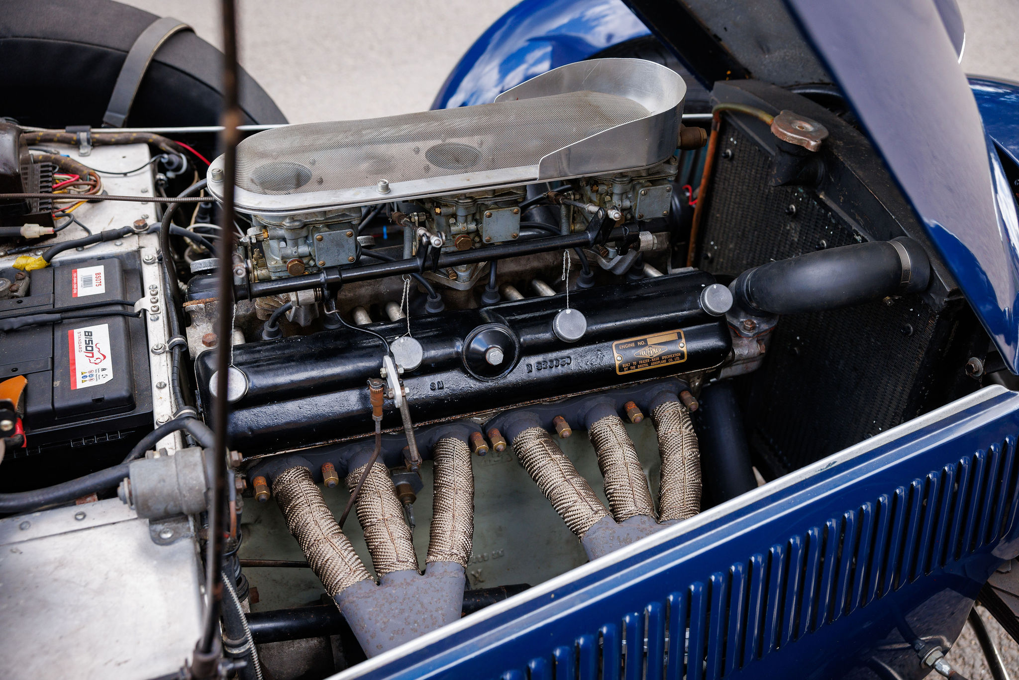Finished in timeless navy-blue coachwork and tastefully paired with black leather upholstery, WOK 7 has benefitted from significant restoration in recent years. Under the ownership of Mr. J. Baker, the factory-fitted 110 Bristol 6-cylinder engine was removed and replaced with a period-correct Type 85 Bristol block, paired with a genuine FNS cylinder head (FNS 18). This head was previously owned by Bob Gerrard and fitted to his Le Mans Rep chassis 100/119. The engine was built to FNS specification by Tony Byford, a renowned Bristol/BMW engine specialist, ensuring it closely matches the configuration of the original cars.