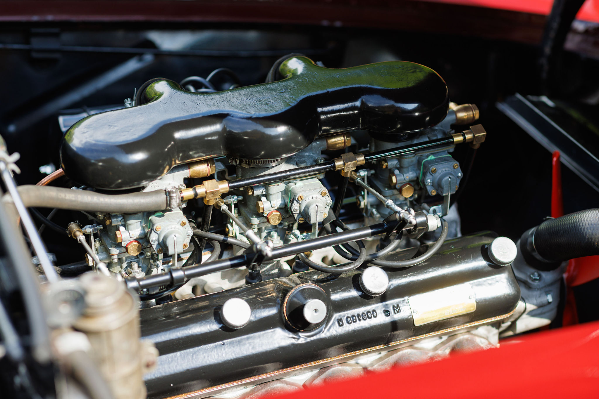 The engine rebuild has used all the latest specification materials, including Cosworth pistons with new liners, new solid billet crankshaft and big end bearing shells, refurbished camshaft with new timing chain & tensioner, redressed valves and upgraded springs, with all components statically and dynamically balanced. The starter motor has been rebuilt, the mechanical fuel pump overhauled with new E10-safe diaphragm, oil pump fully overhauled, three carburettors stripped, rebuilt and re-jetted, water pump fully overhauled, one-shot lubrication system overhauled, and new diaphragm clutch fitted. All components bright zinc-plated or powder coated, as appropriate. Engine now has 9.5 to 1 compression ratio with higher power output.